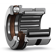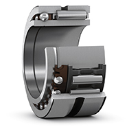 SKF 組合滾針軸承由徑向滾針軸承和推力軸承共同組成。 它們能同時(shí)承受徑向和軸向載荷。 在應(yīng)用中,當(dāng)其它類型的定位端軸承配置占用太多空間或者軸向載荷太重、轉(zhuǎn)速太高或帶簡(jiǎn)易止推墊圈的軸承配置潤滑不足時(shí),尤其適合使用組合滾針軸承。 SKF 提供的組合滾針軸承有以下三種基本設(shè)計(jì):